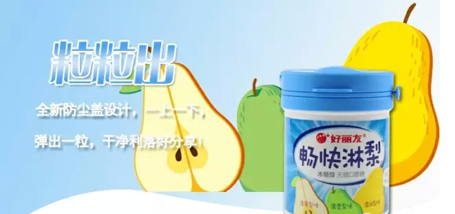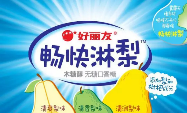 近期,素有“好朋友”之称的知名休闲食品品牌好丽友,推出木糖醇新品——畅快淋梨。该款口香糖特别添加梨和枇杷,以雾霾天、堵车时、咽喉不舒服时为消费场景,定位爽爽喉功能诉求,让人尝后顿感清爽,与产品名称“畅快淋梨”可谓相得益彰。