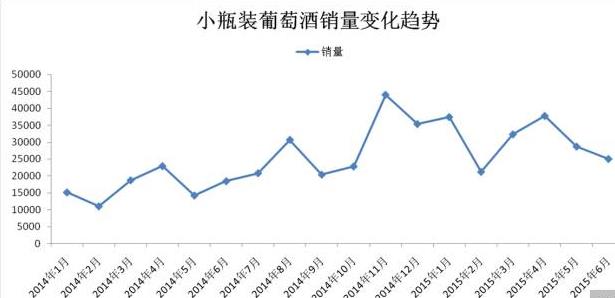 2014年1月至2015年6月,电商平台上小瓶酒销量呈增长的趋势,可以看出,小瓶装葡萄酒具有一定的市场需求。