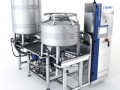 目前有一种新的可能性,供果汁饮料制造商无菌处理果肉或果块等固体物质,成本也不高,这就是克朗斯研发的 DosaFlex 大型无菌容器加工站。它可在无菌状态下定量分配各种固体物质给成品饮料,而且不损伤产品。这是第一