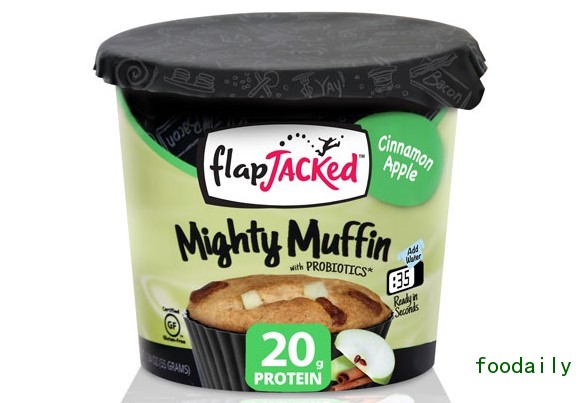 科罗拉多州Westminster的FlapJacked, 推出了含有益生菌的单份松糕新品。该产品用可微波杯子包装,消费者只需向其中加入水,加热35s即可焙烤好。有双倍巧克力和肉桂苹果味,该产品通过了无麸质认证,每份含20g蛋白质。