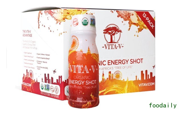 Carol Stream, Ill.的Vita-V Energy公司瞄准第一款含有猴面包的有机能量shot 市场。该公司称产品包含猴面包树果肉,和其他5种有机超级水果。