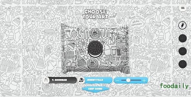 奥利奥日前推出了两款节日限量包装,由艺术家 Jeremyville 和 Timothy Goodman 绘制图案,顾客完成涂色部分,而这一切全部在线上完成,画完后直接下单、支付、送货上门。