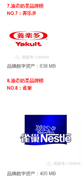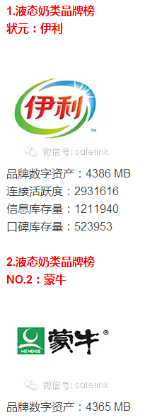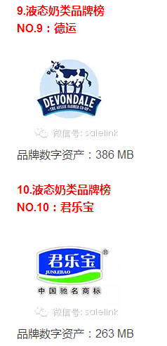 2015年品牌数字资产榜——液态奶类品牌榜