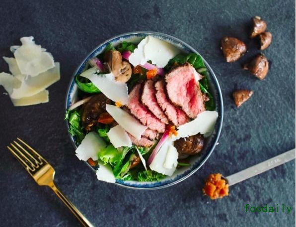 其中肉类使用三文鱼、牛排较多,也基本在你点单之后现场烤制,油和调料都很少量甚至不放。除了沙拉选项,在 Dig Inn 餐厅里这样丰富蛋白质(肉、豆制品)的套餐叫做 marketplate,一份的价格在 10 美元左右。