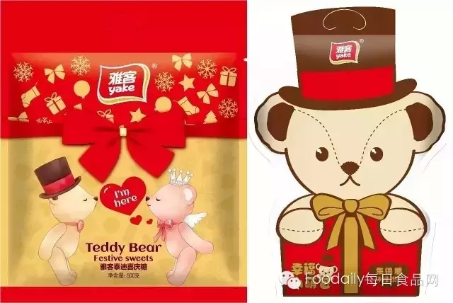 为迎接年节消费,雅客重点推广了两款新型礼包,利用超萌泰迪来为礼包加分,提前布局年糖市场。