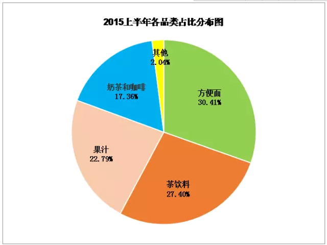 2015年上半年,营收为120.054亿元;方便面为36.52亿元;饮品81.096亿元,其中,茶饮料32.895亿元,果汁27.355亿元,其余为奶茶和咖啡。