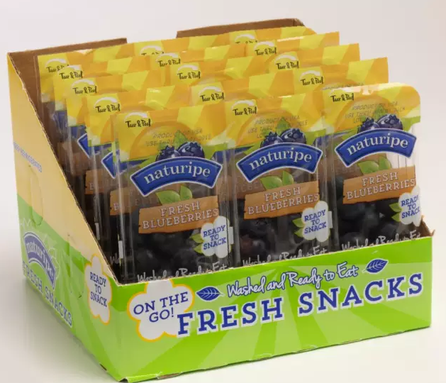 现在该产品系列有三种口味,分别是蓝莓、蓝莓+芒果和蓝莓+葡萄。包装外观靓丽,易于货架展示的同时还能保护内部的水果。卓越的包装为娇嫩的蓝莓撑起了保护伞,包装内部湿度稳定,可避免水果变干。Naturipe全球销售总监Clay Wittmeyer先生告诉国际果蔬报道,这款即食蓝莓产品在1℃条件下,货架期高达21天。并且小包装盒简单易撕开,不管是大人还是小孩,都会觉得它方便易拿。