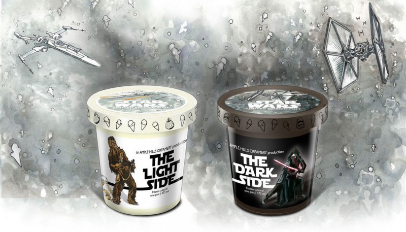 两个限量版的冰淇淋,The Light Side 是由奶油棉花糖加上黑色的可可脆制成,代表了在光亮之中也有隐藏着的黑暗,另一个 The Dark Side 是用浓咖啡巧克力和可可脆做的布朗尼冰淇淋,布朗尼上面用白巧克力点缀,代表了在黑暗之中,仍有光亮慢慢浮现出来。