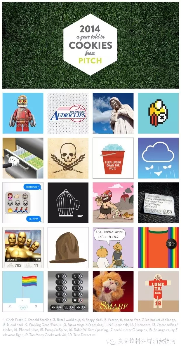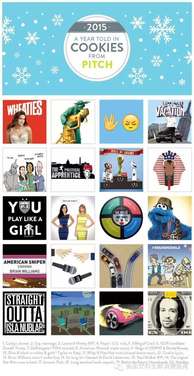 Pitch是总部位于美国洛杉矶的一家广告创意公司,他们声称自己是流行文化的仲裁者,他们爱生活,爱美食,更爱朋友,当然他们也是爱国的,所以他们才会突发奇想地将2015年整年的美国流行文化事件做成了甜点——饼干。