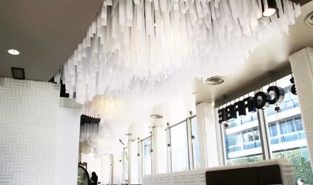 店铺位于新宿,两年前这家店就在了,不过最近装修一新后变成了“白雪主题”店。墙面装饰使用了吸音材料,目的是让顾客感受到“雪原”上的寂静。