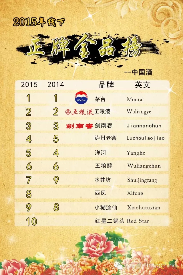 中国酒:茅台五粮液缠斗 洋河跌至第五