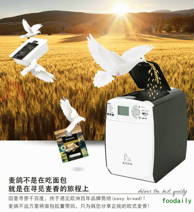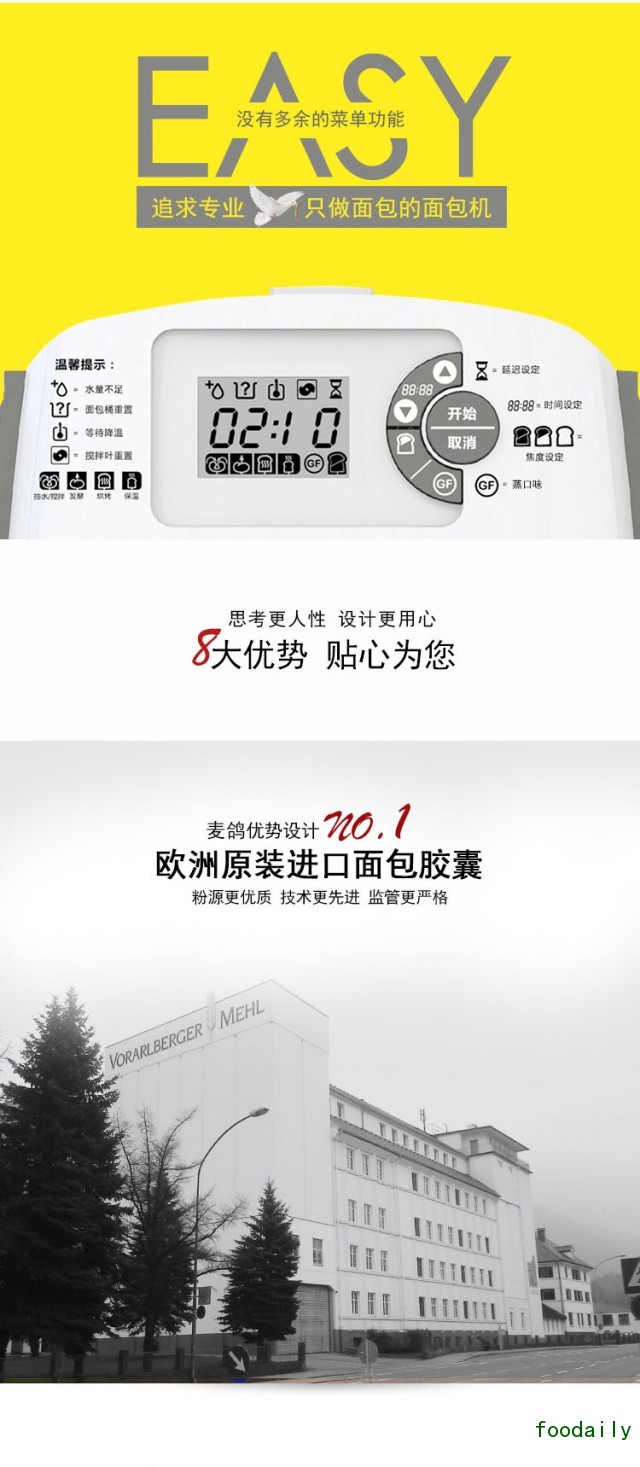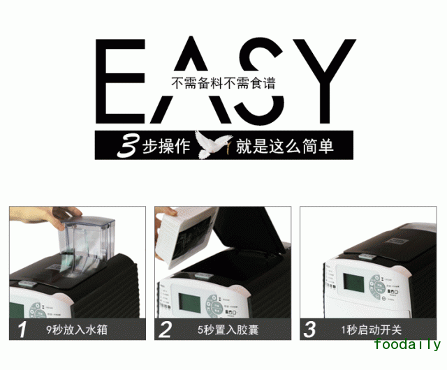 现如今快节奏的社会应用而生很多节省时间提高效率的产品,譬如早前的胶囊咖啡机。现在胶囊面包机又问世了,你不用再为配料发酵食谱而担心,只需简单的3个步骤就可以制作出安全卫生美味的面包。放入你喜爱口味的胶囊,加水,启动电源,一切就ok啦。