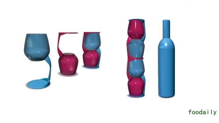 这一想法来自于Toca,201发明公司的CEO,该公司主要开发一些创新性的消费品。“我们最近开发了一个新的单人份葡萄酒市场包装方案,它叫Couple,它是一款杯脚连锁易堆叠的葡萄酒杯。”他说。