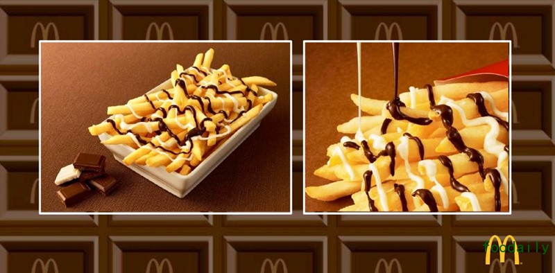 不过虽然没有牛河,麦当劳还是有新品的,这款新品叫 McChoco Potato,目前仅在日本地区发售。这直截了当的名字让我们很容易脑补出画面。对,这款产品就是在薯条里挤上了巧克力酱。麦当劳表示,每个人都会有喜欢咸味的一面和喜欢甜味的一面,选择这款薯条将让你不再纠结。
