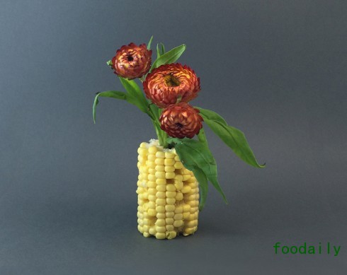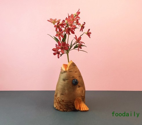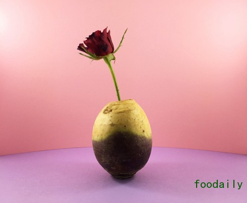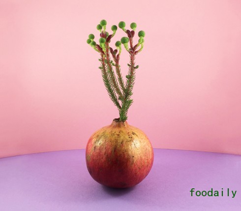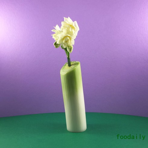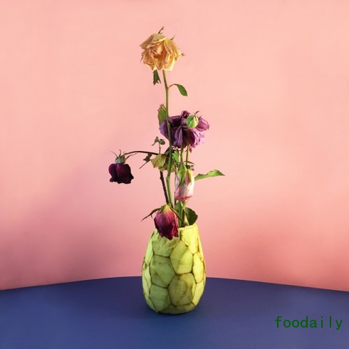 设计师Danling Xiao用各种蔬菜做成的花瓶,也许是昨晚吃剩的半颗土豆,也许是从隔壁王大娘那里要的一截大葱,并不需要太多的处理,就那么把它往桌子上一放,再加上一束花的幽香,就成就了非常有情趣的生活。