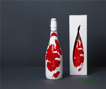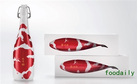 日本新泻今代司酒造出品了如此气质高雅的日本清酒“锦鲤KOI”。酒瓶上有红色鲤鱼的花纹,搭配的外盒上有一个鱼形空白,将酒瓶放入其中,宛如锦鲤在游动一般,非常漂亮。独具创意的设计,荣获世界最大设计奖 Design for Asia Awards。