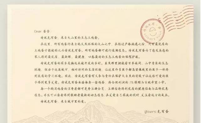 ↑品牌故事和形象的结合,大山里走出来的土鸡蛋,突出原生态