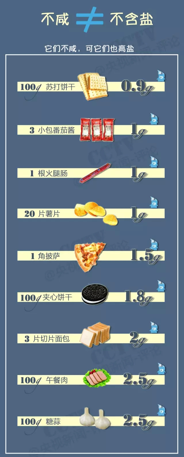 “隐形盐”在哪里?其实在我们生活中,并不是咸的东西才含盐,这些食物不咸也高盐量!