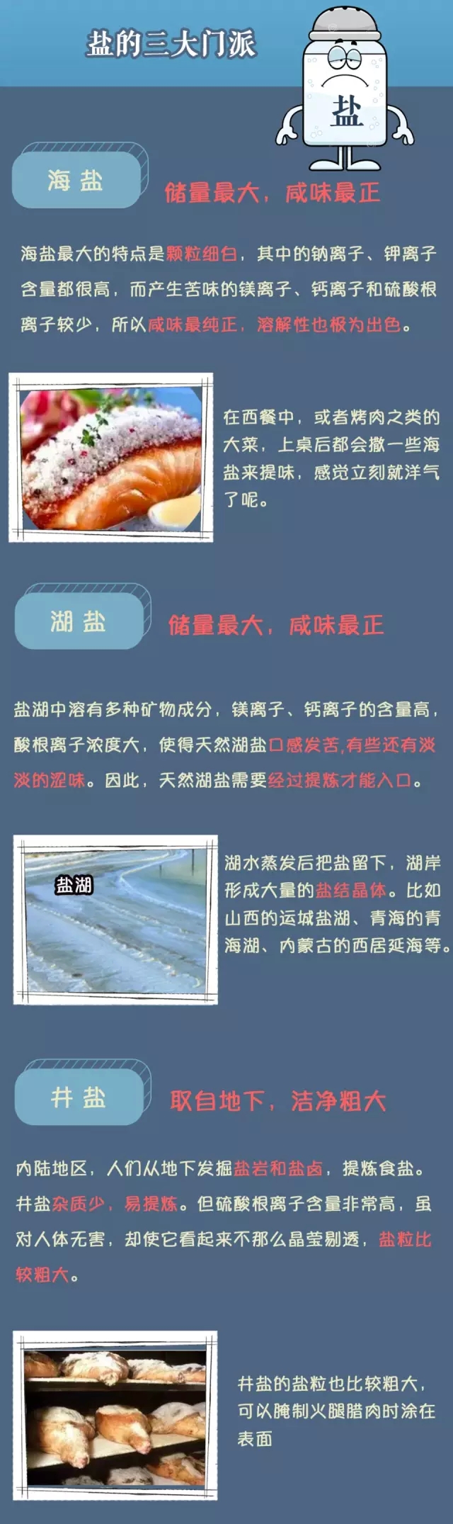 “我吃过的盐比你吃过的饭还多”,这句话常听到对不对?这时候反问对方:你吃哪一派的盐?那他还真不一定能答上来。没错!盐也分派别!虽然盐最主要成分都是氯化钠和氯化钾,但由于所含其他成分不同,也就有了不同的形态和味道。