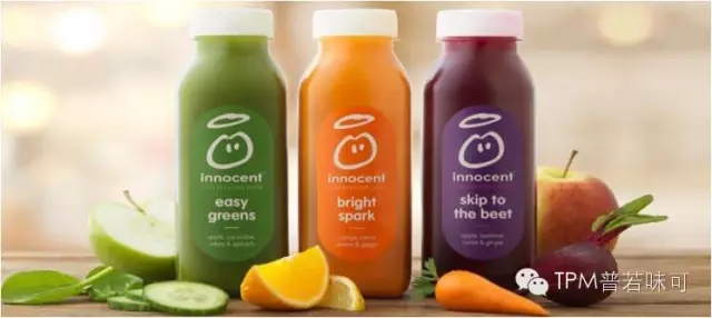 Innocent是被可口可乐收购的英国果汁品牌,推出的BrightSpark冷压蔬果汁每种口味里面都带了点姜。