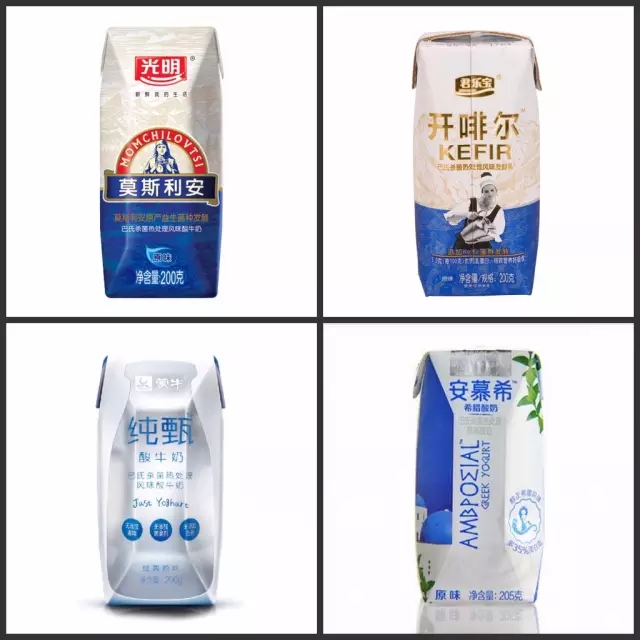 莫斯利安开启了酸奶的常温时代,与伊利的安慕希、蒙牛的纯甄、君乐宝开啡尔共同组成钻石包常温酸奶“四大金花”,引起国内常温酸奶热,至此钻石包似乎成为常温酸奶的天然属性。虽然由于生产线的限制,部分乳品企业推出苗条砖装常温酸奶,如金河乳业推出常温酸奶“阿拉丁传奇”、娃哈哈推出儿童常温酸奶“儿童奶酪酸奶”,但并未能形成主流。越来越多的乳品企业或是引进生产线,或是寻求OEM,推出钻石包常温酸奶、常温酸奶饮料。