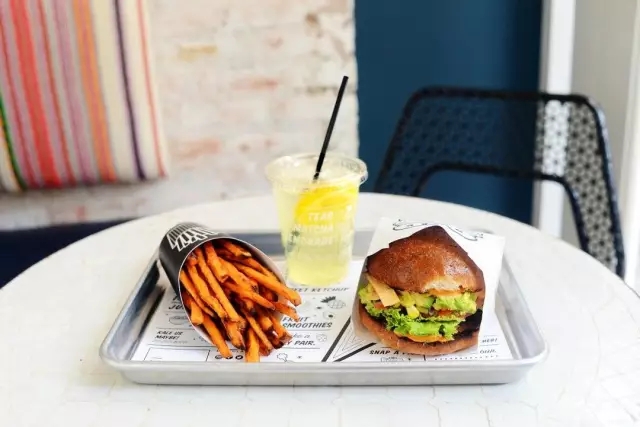 其中提供的食物与一般的素食餐厅可能很不一样,不太会给人一种“食草”的感觉。比如汉堡、冰淇淋、杯子蛋糕、意面和薯条。大部分餐厅里的食物都有用牛油果这一食材,这是主厨Chloe的最爱,希望以此加上蘑菇、腰果、杏仁、素食奶酪等带来满足感。