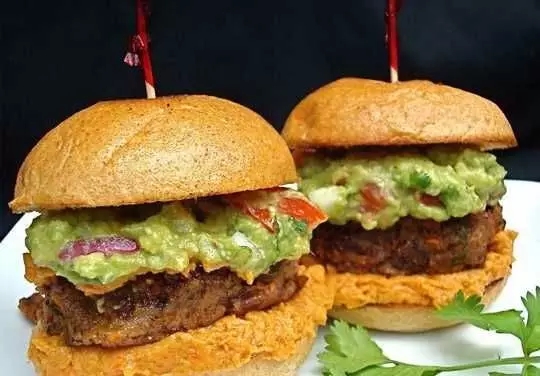 最畅销的Gauc牛油果汉堡,由黑豆、甘薯、藜麦和牛油果组成: