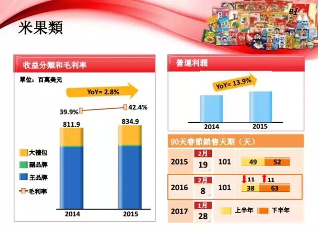 另外,旺旺还增加了对经销商陈列的支援,同时也强化多形式的特陈、加强与消费者互动的行销活动,这些方式使现代渠道的干货类产品于2015年取得了双位数收益成长,在米果传统渠道的销售上也看到了一定成果。