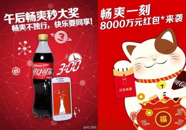 2014年可口可乐与易迅网的合作中,不仅赠送可口可乐产品,还有易迅网现金券和三星定制智能手机;同样,2015年也带有滴滴打车红包、微信红包等礼物。而今年,则有更多突破。