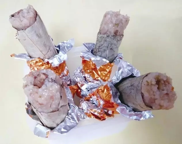 记者看到,烤粽子虽然名字依然叫粽子,但形状是圆柱形的,和传统的三角粽相比已经有了很大变化,而且外边也不再包裹粽叶,用锡纸代替。最重要的改变是加热方式,不用蒸煮,可以直接放在烤肠机上加热。
