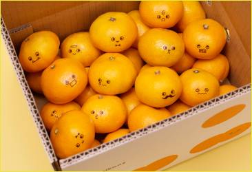 ▲ 中国人都爱在苹果上印“福禄寿喜”之类的吉祥话,日本人则比较逗趣,他们把可爱的表情挨个贴在柑橘上。这可称得上是最薄的食物的包装了。日本柑橘品牌Mikans,获2013年Pentaward银奖。