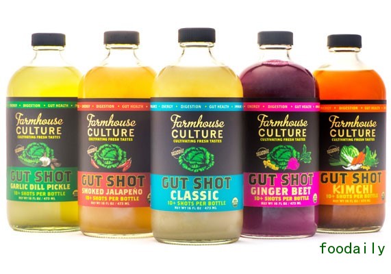 得益于天然益生菌的优势,发酵食品和饮料正在快速增长,包括酸奶和膳食补充剂。加利福尼亚州Santa Cruz的Farmhouse Culture公司推出了全新的有机益生菌蔬菜饮料Gut Shot系列产品,包括蒜腌黄瓜、烟熏墨西哥椒、韩国泡菜、姜甜菜。公司宣称,这一系列产品既可以作为汤、沙拉、调味酱的添加剂,也可以当做饮料直接饮用。