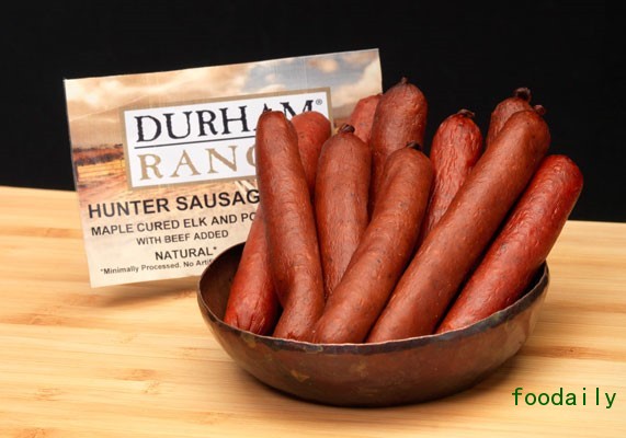 今年来,人们对于吃肉相关的健康问题越来越关注,肉的来源有很多,包括野猪、北美野牛,以及水牛等。Durham Ranch公司全新的牛肉干产品,选取怀俄明州家庭牧场的水牛,不含硝酸盐和磷酸盐。该品牌的Hunter香肠产品枫树木熏制麋鹿肉、野猪波旁威士忌口味、含有大蒜、迷迭香味道的卤肉,以及Ancho红椒野牛肉。