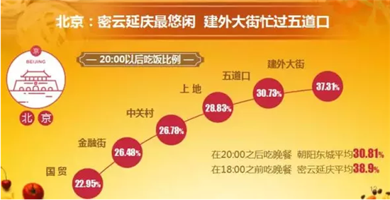 其中,帝都有31.79%的消费者晚饭时间在20:00之后。