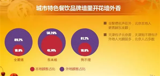 全聚德名声在外:89.2%的消费者为外地游客;北京本地人更青睐东来顺:41.74%的消费者为本地消费者。