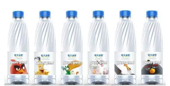 同样在4月份,恒大冰泉也推出“愤怒的小鸟”版矿泉水,根据电影中6个不同的角色来设计了6款新包装,希望用活泼的形象来吸引年轻人的注意。