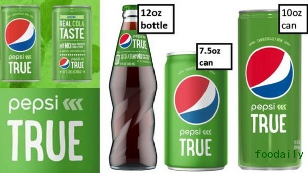 该产品是为了帮助消费者“回归可乐饮料快乐和提神的本质”而设计的。Pepsi True相比传统的百事可乐,含糖量减少了30%,采用了绿色的包装,表现出该产品更加“天然”的特性。在包装的后面,用加粗的字体强调该产品“无果糖玉米糖浆”和“无人工甜味剂”。
