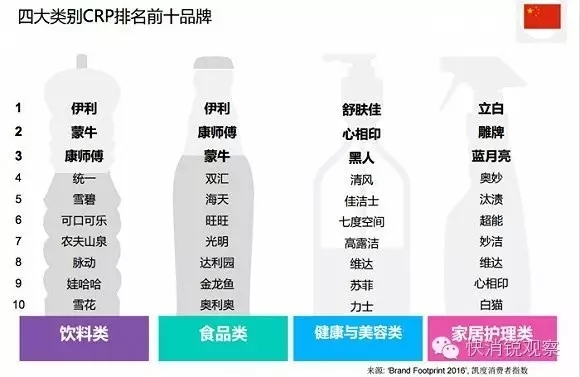 凯度消费者指数显示:“在消费者购买品牌选择中,中国品牌的地位不可取代。这种成功不仅体现在中国品牌包揽消费者选择最多的前十榜单,从各子类排名来看,也可以看到消费者熟悉的品牌,如维达、蓝月亮、君乐宝、七度空间等,它们的发展速度快于国际品牌。在快速消费品市场增速放缓及消费者升级消费的宏观环境下,中国品牌迎合了新的消费趋势,通过产品和营销创新,重塑新的竞争格局。”