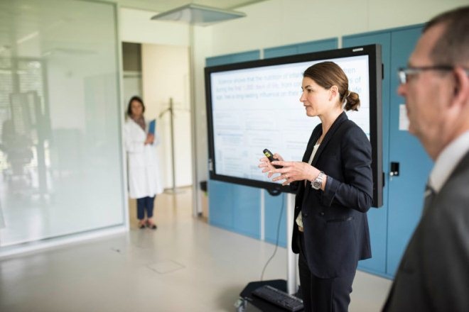 接下来,参观就正式开始。记者遇到的第一位雀巢科学家是Isabel Bureau Franz。这位漂亮的不像科学家的女士负责的研究项目为生命中的第一个1000天项目,也就是从受孕到2岁期间的婴幼儿及儿童项目。这是雀巢投入资源最多的领域之一,在这座大楼里,有15个相关项目正在进行,有30到40个相关实验正在开展。