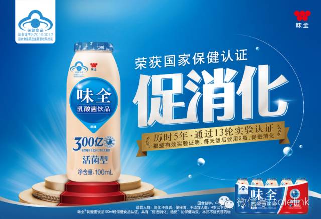 人体肠道内的有益菌会随年龄增长、不当的生活习惯、工作压力增加而减少,而使有害菌比例增加。为此,促消化、保护肠道健康的活性乳酸菌饮料更多走入消费者视线。而活菌的种类和数量是乳酸菌产品赢得消费者、决胜市场的关键。丹麦乳业具有悠久的历史,发达的畜牧业催生了大批乳酸菌研究所,丹麦科汉森公司更是其中的佼佼者,拥有世界上最大、生产能力最强的菌种工厂,益生菌市场占有率为世界第一。味全一直秉承为消费者提供最优质乳酸菌的理念,早在2002年便与科汉森公司合作,是首个与科汉森达成合作的中国乳酸菌品牌。味全以1916年被丹麦人Oria Jensen 分离出的干酪乳杆菌为基础,经过菌种纯度检验、活菌数检验、专业的发酵培养、严格的指标控制等一系列过程研发出口感清爽、含超强活菌的活性乳酸菌饮品。