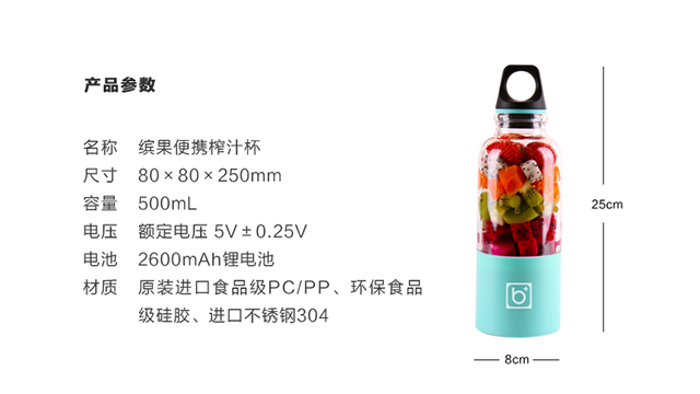 功能设计上,Bingo采用三段可拆杯身,可以轻松清洗每一个死角,电子元件都隐藏在杯身下部,充电接口、开关、指示灯都集成在杯底,这样清洗时可最大限度避免水进入内部。内置2600mAh锂电池,可充电设计让你摆脱电源线束缚,随时随地轻松使用。