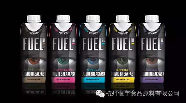Fuel10K liquid breakfast是一款富含纤维、维生素、蛋白质,同时脂肪含量小于1%的早餐饮品,一共有香蕉、巧克力、草莓、拿铁咖啡和香草五款风味。其目标消费者定位为16至35岁拥有积极生活方式的男性,这一类人群往往没有时间坐下来享用早餐,即饮即走的高蛋白早餐饮料更符合他们的生活习惯,尤其随着越来越多的消费者了解蛋白质可以抵抗饥饿后,这类产品获得更高的市场认可度。除了产品本身一些健康便捷的特性,其个性的包装也是吸引年轻男性消费者的一大亮点:黑色的背景下突显出一只深邃的眼睛,看起来前卫,带点破坏性,激发起男性内心深处的力量感。