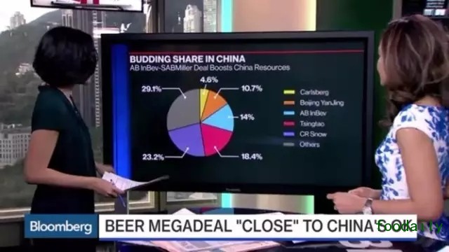 而在同一天,彭博社的电视台在另一个报道里,女主播指出:“有关这次收购的决定尽管可能会附带一些条件,但是并不影响它的通过,原因是,百威英博在这次收购中非常主动地对大量资产进行了剥离,包括在中国退出了雪花啤酒的合资公司。”