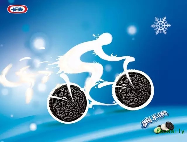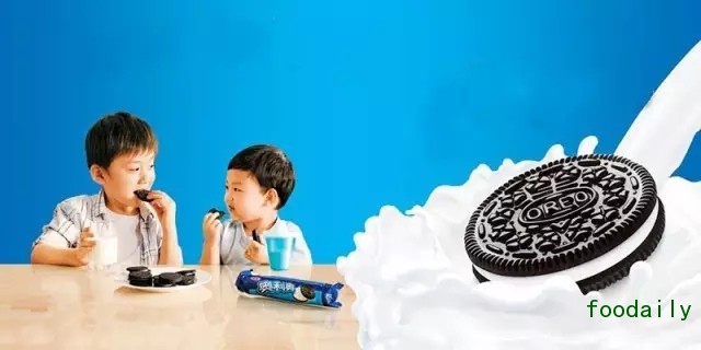 孩童食品,食用人群为孩子,但购买人群为家长。家长购买给孩子的食品,营养是首位需求。对此,奥利奥锁定了孩童成长过程中最高率次食用的营养产品,并且是妈妈心目中营养最广普认知的“牛奶”,在品项和品牌宣传上极致关联牛奶。在品项上于1937年美国主推“奶油夹心饼干”,在进入国内时,奶油夹心饼干也成为奥利奥主推品项。在品牌宣传的所有输出窗口,牛奶泡奥利奥作为产品CP成为宣传主视觉。如广告片里孩子拿着奥利奥往牛奶里“泡一泡”,包装上牛奶撞击的奶花泡着奥利奥,海报上装满牛奶的玻璃杯里泡着奥利奥等。通过奥利奥泡牛奶,强化奥利奥的营养附加值。