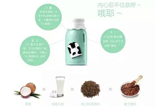 同样的,还有阿萨姆小奶茶,其“南非路易波士茶+澳洲冷冻牛乳+印尼椰浆”的卖点,也是走原料进口的高端路线。