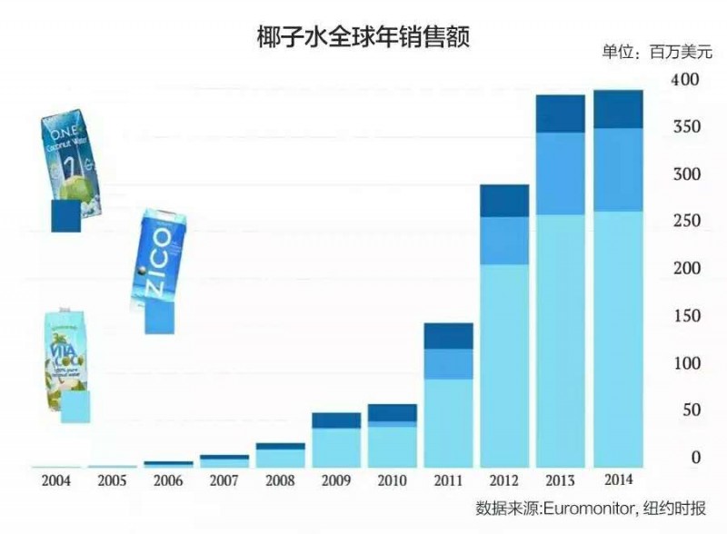 不难想象,一旦中国消费者开始全面拥抱椰子水,这类产品4亿美元(2014年)的全球年销售额还将大大增长。