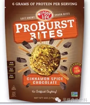 今年3月,Mondelez旗下的Enjoy Life Foods公司推出了一口份量的无过敏源蛋白夹心饼干ProBurst Bites,这是一种奶油巧克力夹心裹在松脆的种子和香料包裹层中。这种产品具有非转基因食品配料,有芒果辣椒、蔓越莓石榴和肉桂巧克力口味,每份至少含有6克植物蛋白质。
