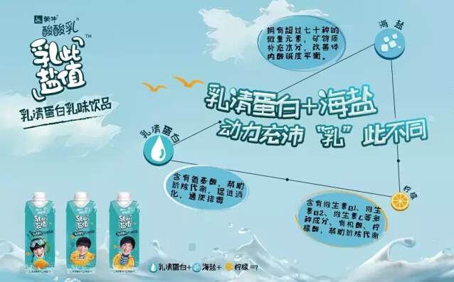 事实上,乳此盐值不仅是一款高颜值的产品,更是一款高“盐值”的饮料——创新加入清新海盐,正满足了当下年轻群体追求全新口味的需求。海盐只是口味创新的一部分,乳此盐值打破了传统饮料的即有概念和固有格局,将不同口味成功“跨界”,首次开创出了“乳清蛋白+柠檬+海盐”的全新配方,乳清蛋白增加活力,海盐让身体水分回归,加上柠檬的酸甜,让乳此盐值的口味更清爽,同时提供更出色的动力供给,充分迎合了90后年轻人的追求,深受喜爱!