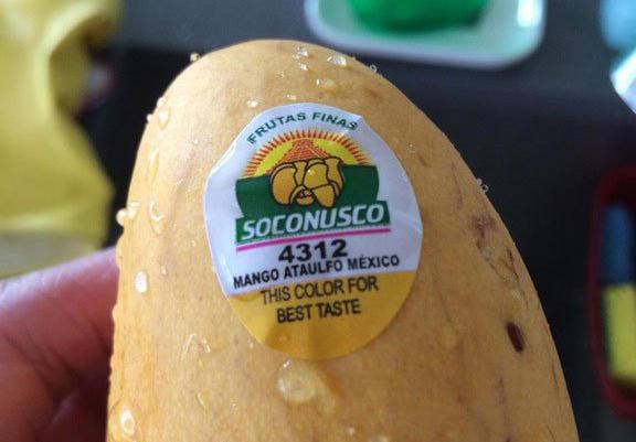 有些需要等熟成的水果,对于经验不足的人,往往很难拿捏正确的时机,芒果厂商直接在标签上覆上色票,告诉你买回家后要等它熟到这个颜色口感最好,真是很贴心呢~
