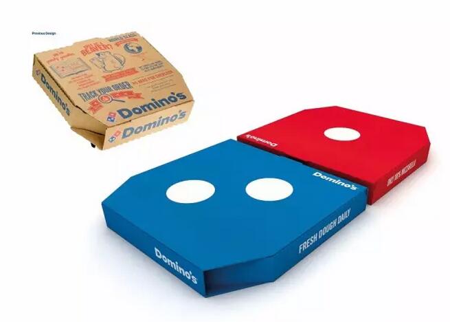 品牌设计机构JKR为比萨饼连锁巨头达美乐披萨重新设计了外带盒,用红蓝两色品牌标志的去构建包装,将售卖的组合变成设计及生活的组合。这一大胆的设计,放大品牌标志到极致,带来了极大视觉冲击力和话题性。